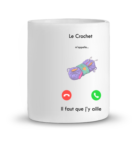 Mug simple Téléphone Blanc. J'peux pas J'ai crochet. Le Crochet m'appelle Il faut que j'y aille. 12.52€